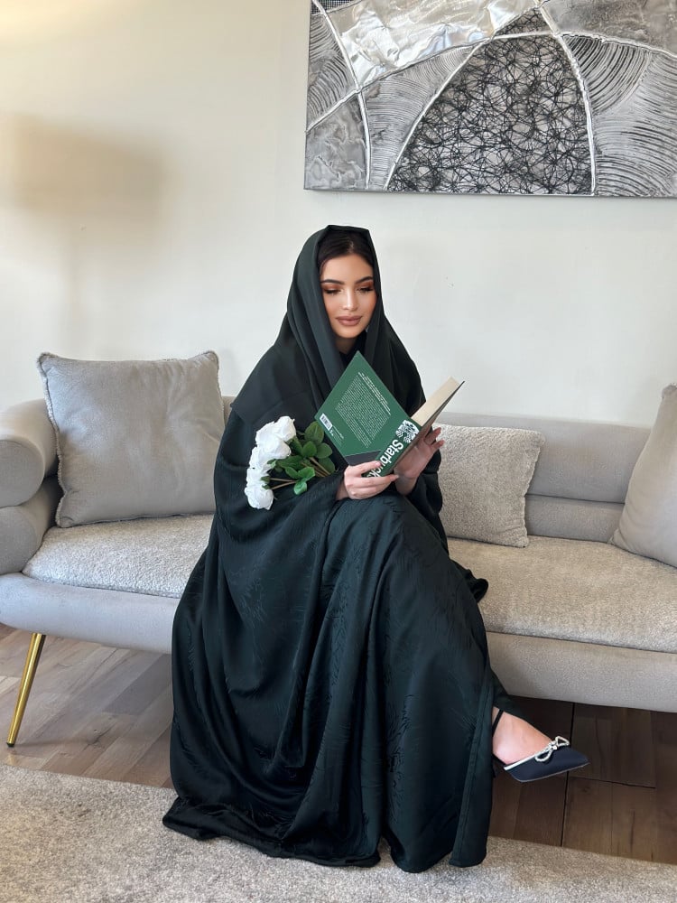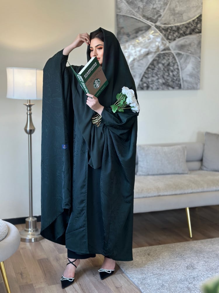 - تأتي عباية مجد بقماش تفتة جاكارا المنقوش بنقوشات راقية و فخمه لإطلالة مميزة